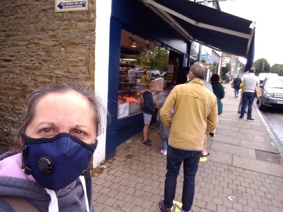 But although at first glance, the high streets and campsites and parks and pubs look the same, in reality this is not the England of six months ago. It’s a new world. There are new sights and stimuli everywhere. New things to look at, new rituals to think about, new rules to follow. And in the same vein that you notice changes more if you don’t see them slowly developing, after being completely removed from society for twenty-one weeks, the differences jump out at me. Masks on faces, social distancing posters on doors, metre markers on floors. Screens at counters, visors on staff, only one person inside at a time. There are queues outside shops, gel dispensers on walls, and even more tables outside. When visiting tourist sites you now need to book in advance, arrive at a set time, and show tickets through car windows. There is signing in your details for track and trace, maneuvering around strangers in the street, and cash is no longer welcome! And due to reduced capacity, ferries and campsites have all become like gold dust!