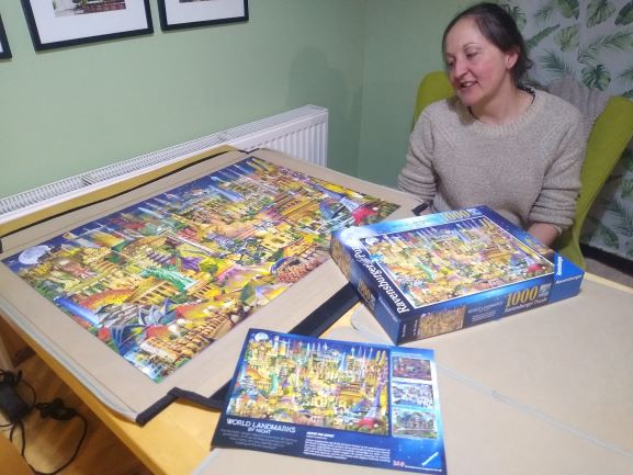 The weather during the winter of shielding, also directly affected everyday life. Many of the activities that had kept us happy and sane and entertained during the first lockdown, were not possible in the second. The ground was too solid for gardening, the weather too wet for neighbourly chats, and it was too cold for astronomy. Although we went on a dog scoot or walking practice daily, my lungs rebelled if outside for too long, and the boggy fields stopped us exploring far. Consequently our world got even smaller. The latter six months of shielding were largely spent inside. We watched a lot of box sets, listened to podcasts, and fell in love with jigsaws! I worked on photobooks, Phil built fences and decking in the garden, and we played some new board games. And amazingly, wonderfully, thankfully (and unbelievably), we raised £17,000 for the PHA from our walking and running challenges! 😀 Our social life was conducted through a screen- with regular quizzes and game nights and catch-ups. And through Zoom we watched more live theatre shows, listened to some talks and debates, and completed a couple of learning courses. And we tried a new recipe every week… homemade butter and bacon and hot cross buns! But without the structure of a job, and without the weekly Clap for Carers or Theatre Thursday like in Spring… for me, the days very quickly became indistinguishable from each other. Weekdays and weekends merged into groundhog day. Monotony ruled.
