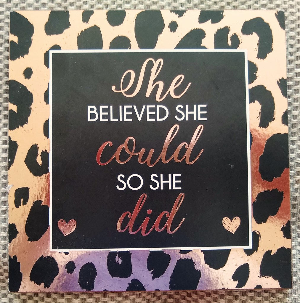 Every morning whilst drinking my tea, I read my sign, and plan my day. She believed she could, so she did. 🙂