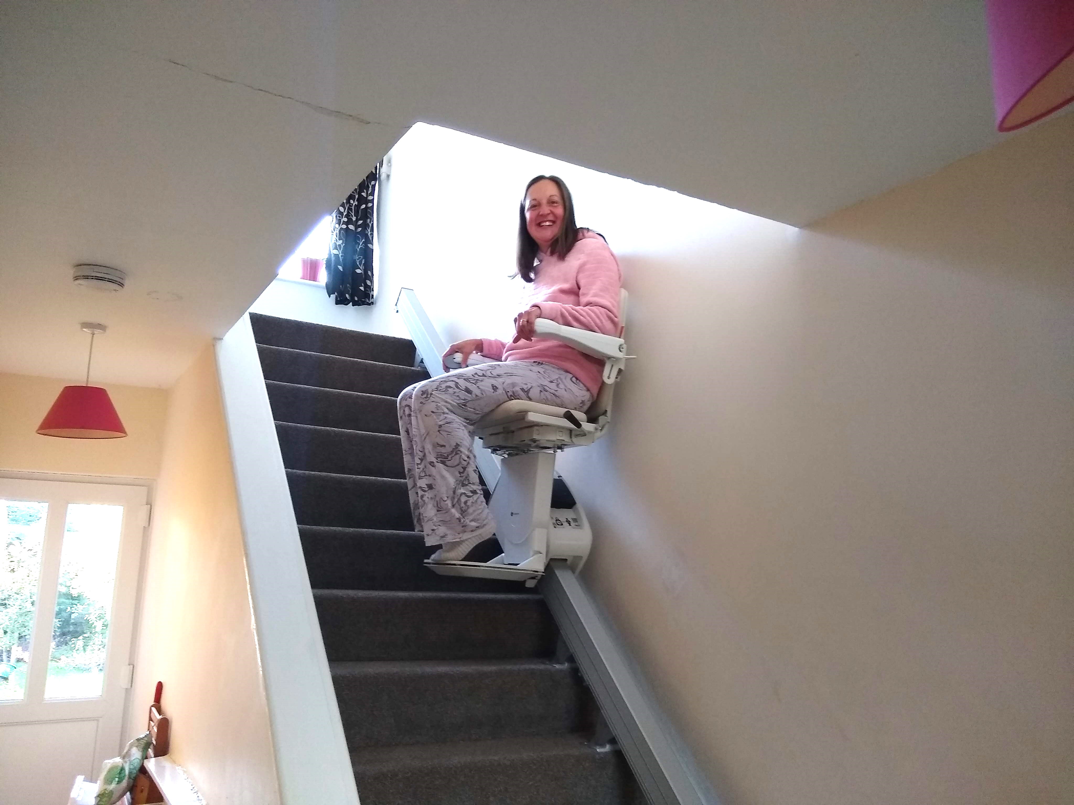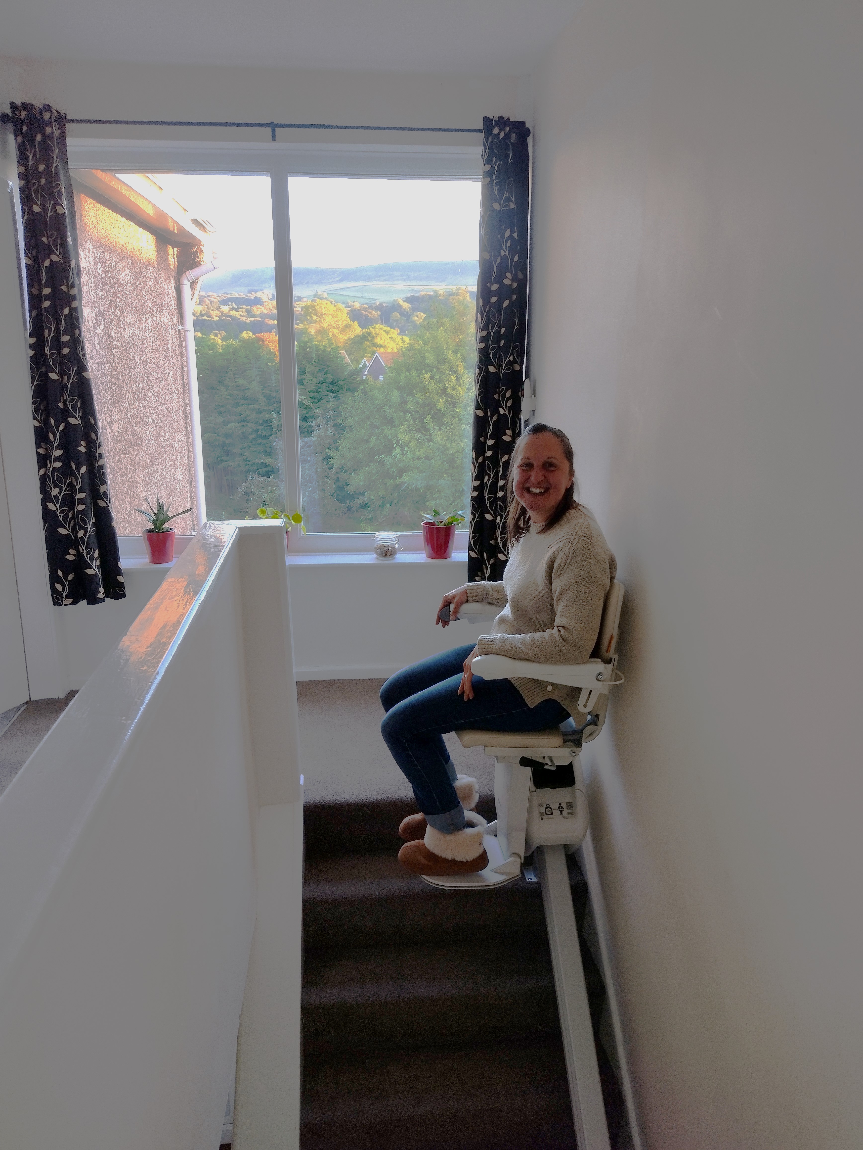 But despite this; I’ve always refused to get a stair lift. Big and bulky and yellow; I didn’t want one. I wasn’t an OAP, I wasn’t in a nursing home, I wasn’t at deaths door (well, I didn’t like to think so… 😛 ). Phil tried many times to persuade me, but my stubbornness always won out. I hated having visible signs of my disability in my home. I wanted to live as ‘normal’ a life as possible, without reminders of my illness. A stair lift would be an enormous flashing red light for everyone. A pity-magnet, a question-provoker. No thank you. And besides, they were so ugly and unsightly and bulky! So I refused. Every. Time.